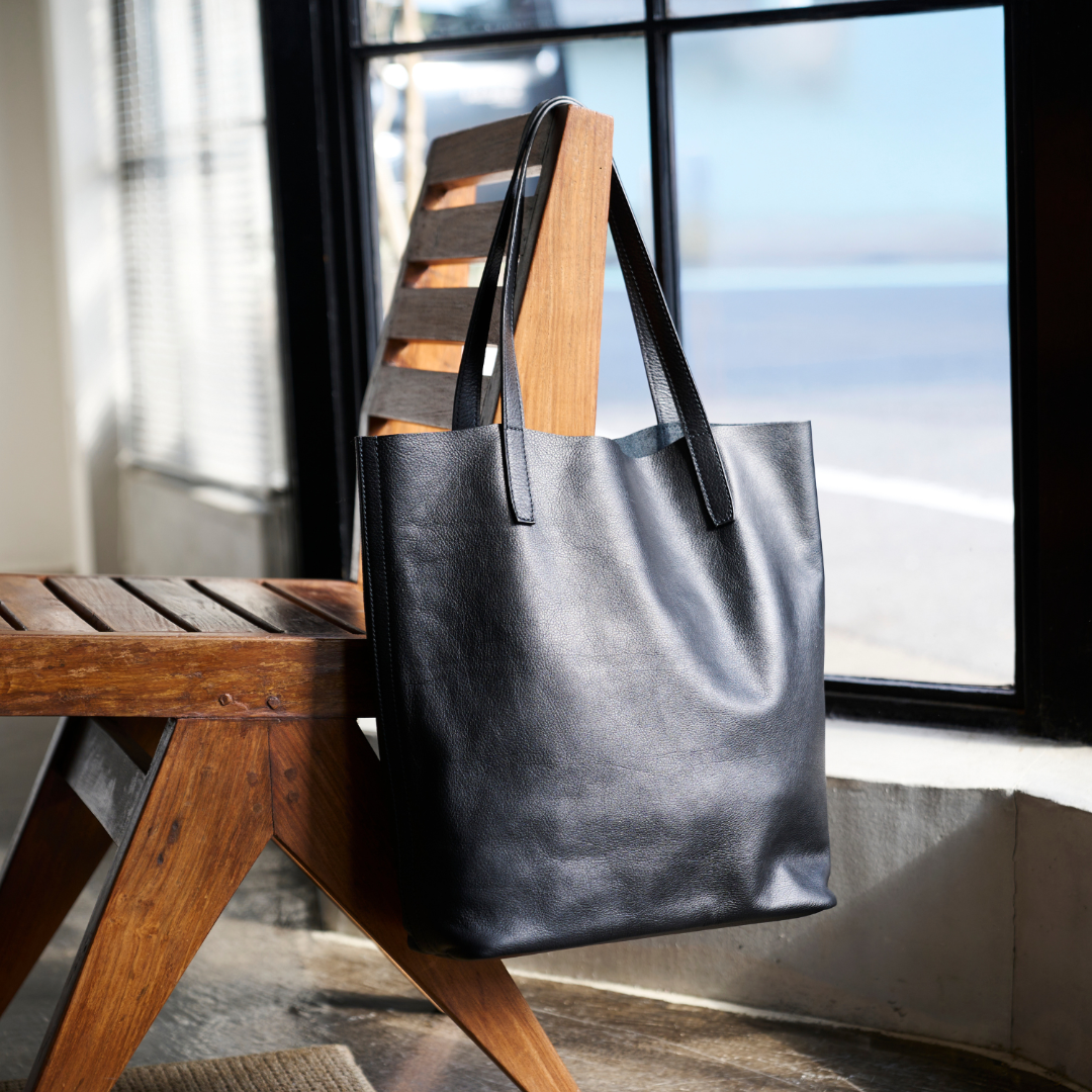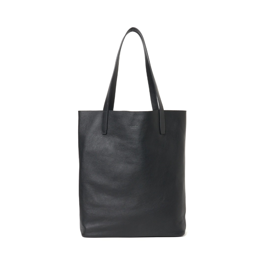 スタイリッシュな縦型トート。トレンドのワイドシルエットなスタイリングに合わせて縦長のラインを強調することでスマートな印象に。