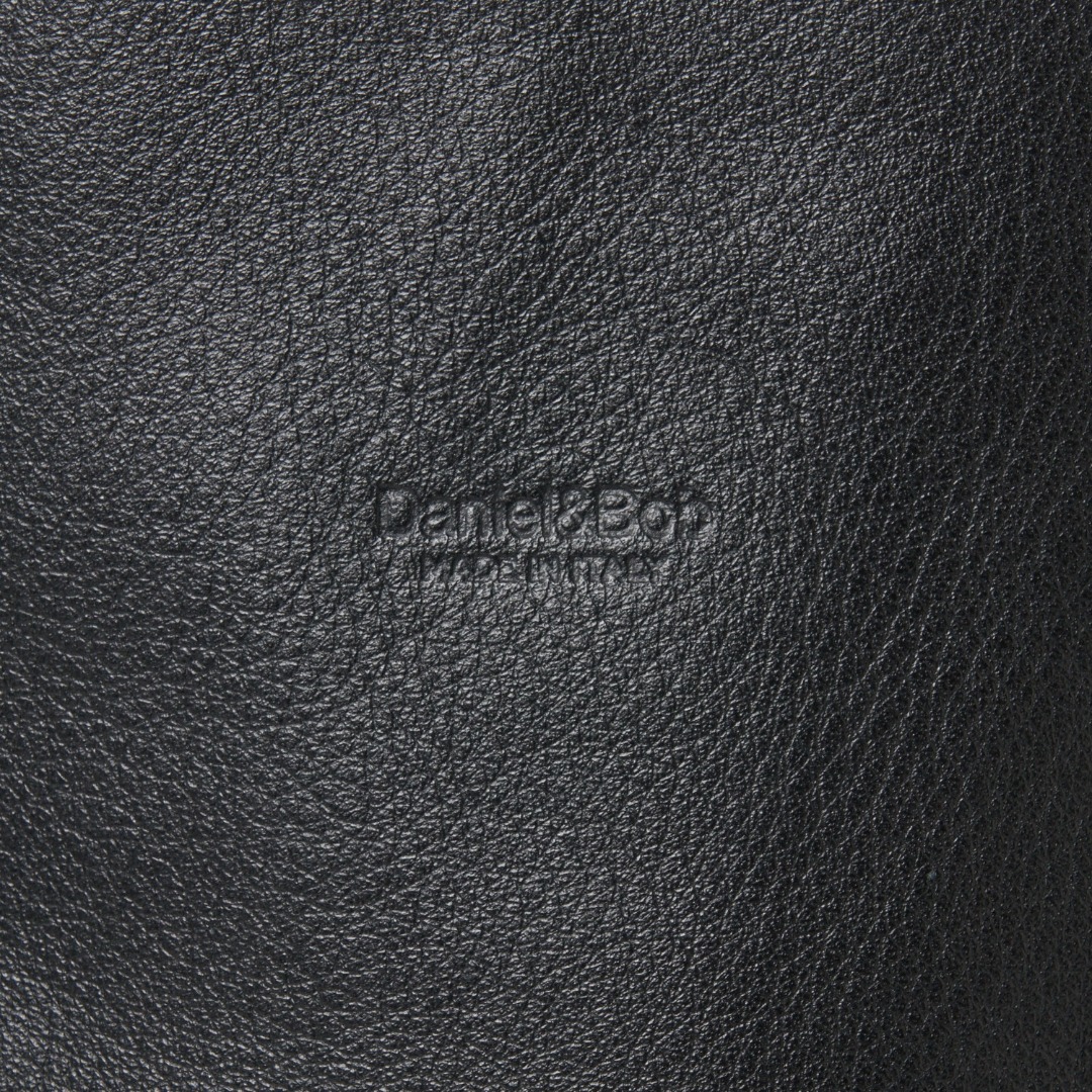 ブランドロゴは小さめな型押しでさりげなく刻印。個々のスタイリングを尊重したいブランドの想いがあらわれています。