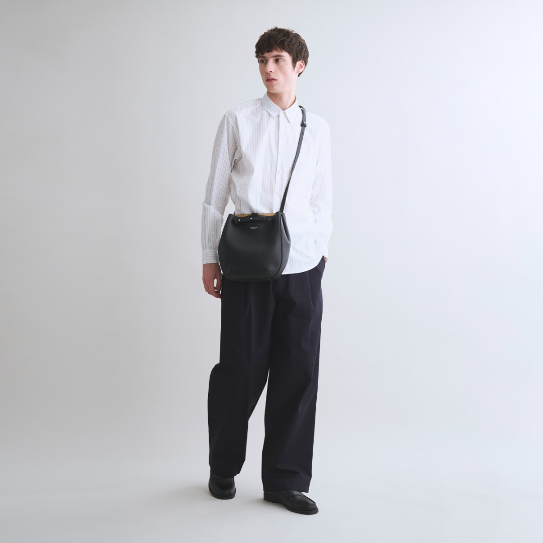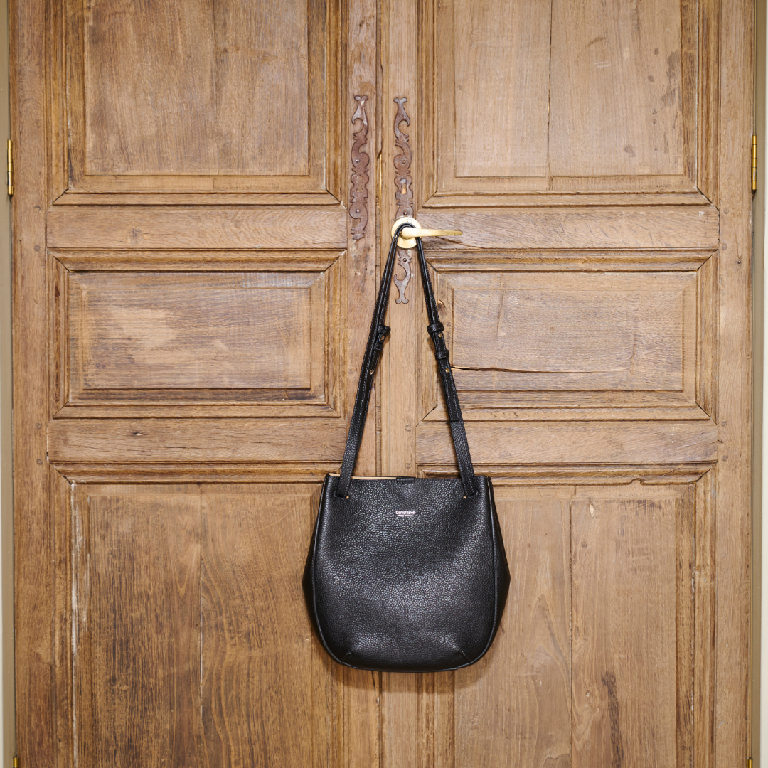 小さすぎず大きすぎない、絶妙なサイズ感のホーボーバッグ。シボ革の内側に薄いスウェードを張り合わせることでシルエットにハリを持たせており、大人のカジュアルスタイルを格上げしてくれます。手首にストラップを巻き付けて巾着風に、肩にかけてショルダーバッグに、ストラップを片側に長く伸ばすことでクロスボディにもなる3 Way仕様。ダニエルアンドボブらしい自由な発想、小ぶりだからこそ漂う品の良さを楽しんでいただきたいバッグです。