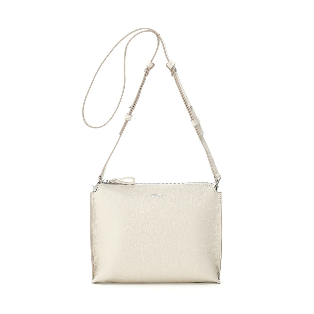 ストラップは長さ調整と取り外しが可能なので、コーディネートに合わせて仕様を変えられます。例えば旅行先のレジャーではストラップを短くしてアクティブな印象に、ディナーではクラッチ仕様にしてスタイリッシュな印象に仕上げる。デイリーでも、かしこまったシーンでも、ひとつで多様なシーンに対応できる汎用性の高さが人気です。