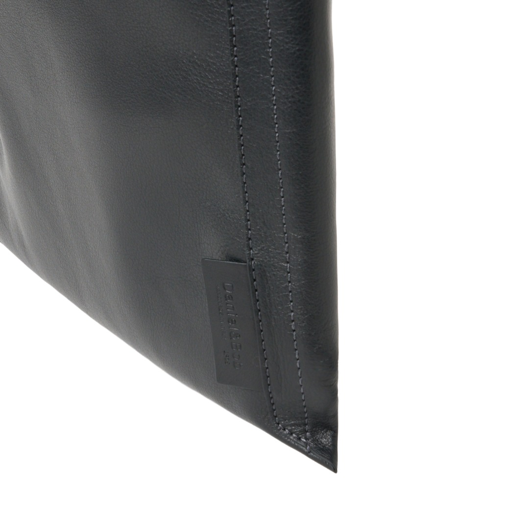 従来のようにサイドをミシンで縫い合わせず、フロントにステッチを配することでデザインステッチのように見せる細かいこだわりも。ブランドネームも型押しにすることで、主張しすぎず、個々のスタイルを尊重する佇まいです。