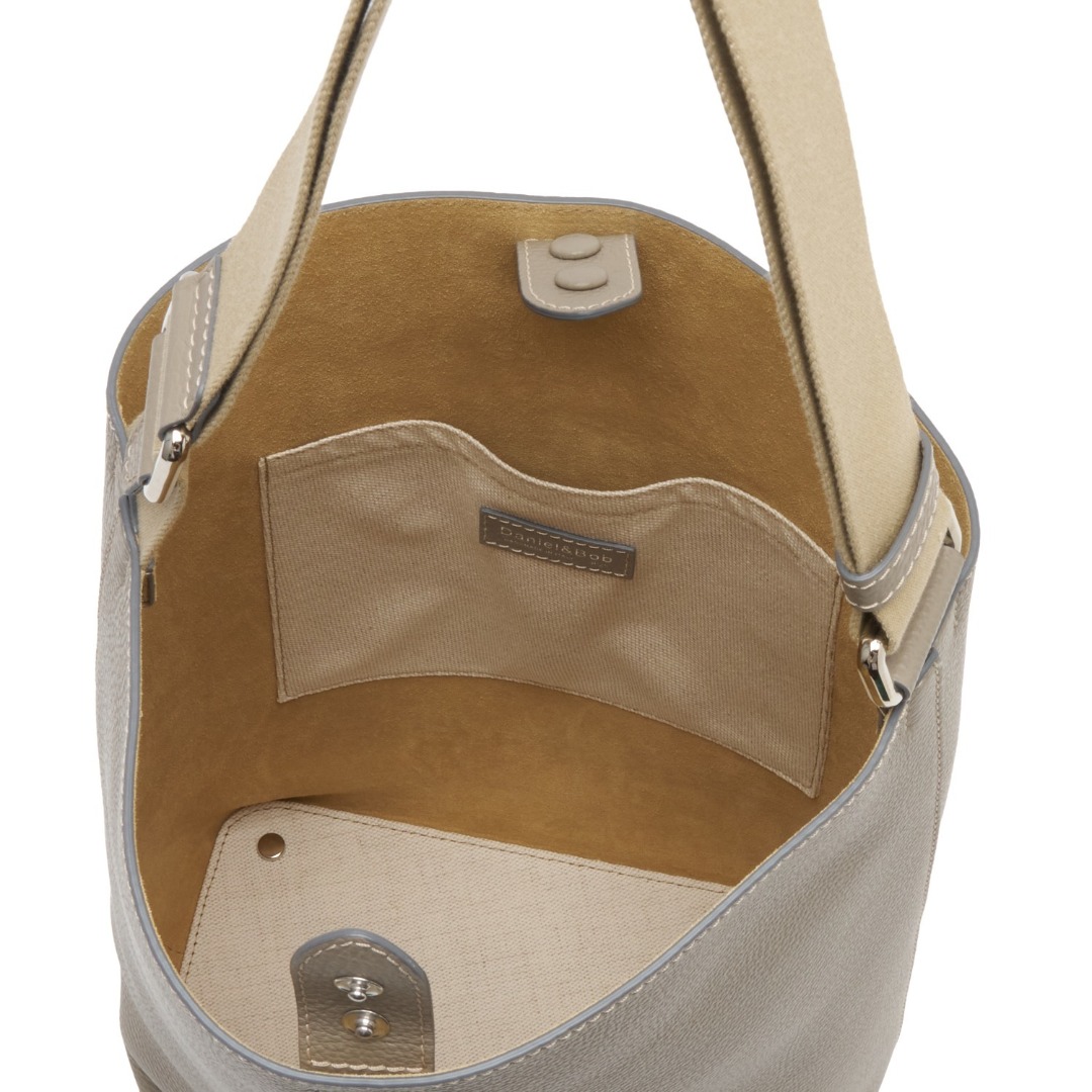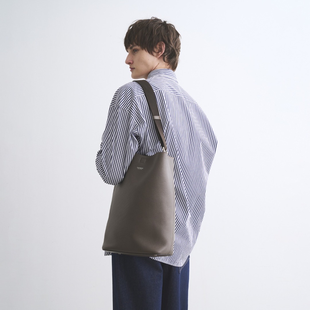 シーンに応じて持ち方を選び、着こなしに静かな余白と品格を与えてくれる。 まさに、“説明しすぎず、確かな上質を伝える”バッグです。