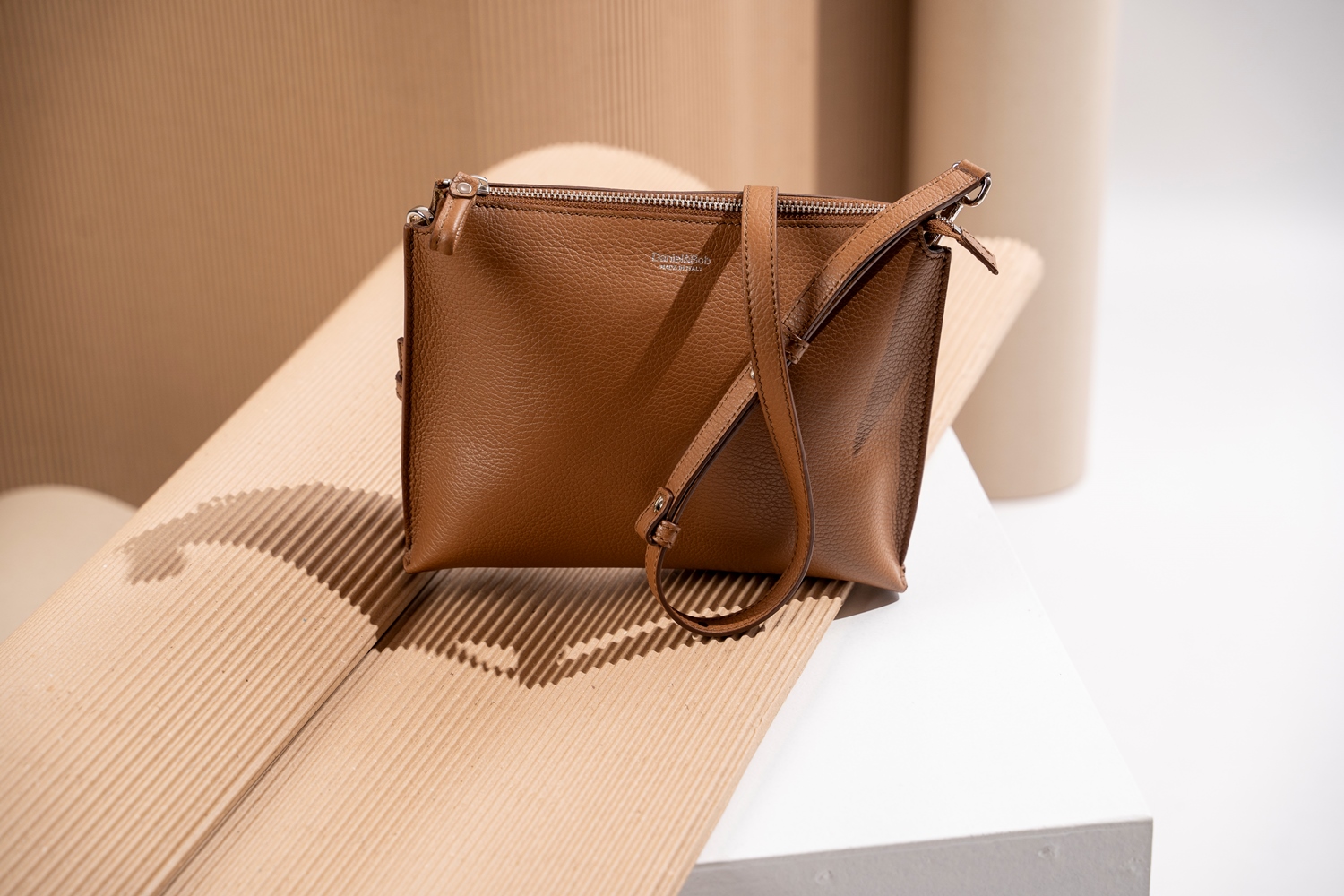 シンプルな2枚パネルで仕立てたコンパクトなショルダーバッグです。