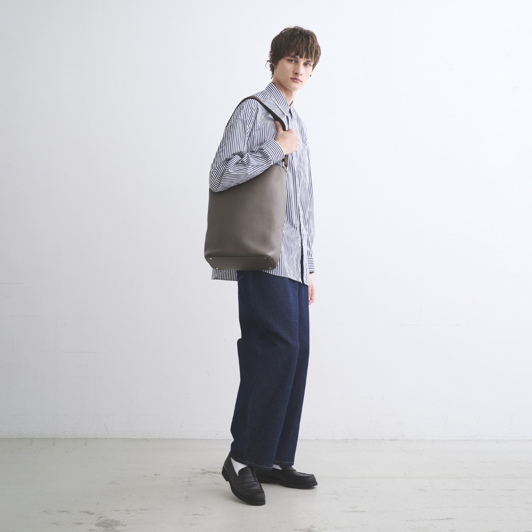 シーンに応じて持ち方を選び、着こなしに静かな余白と品格を与えてくれる。 まさに、“説明しすぎず、確かな上質を伝える”バッグです。